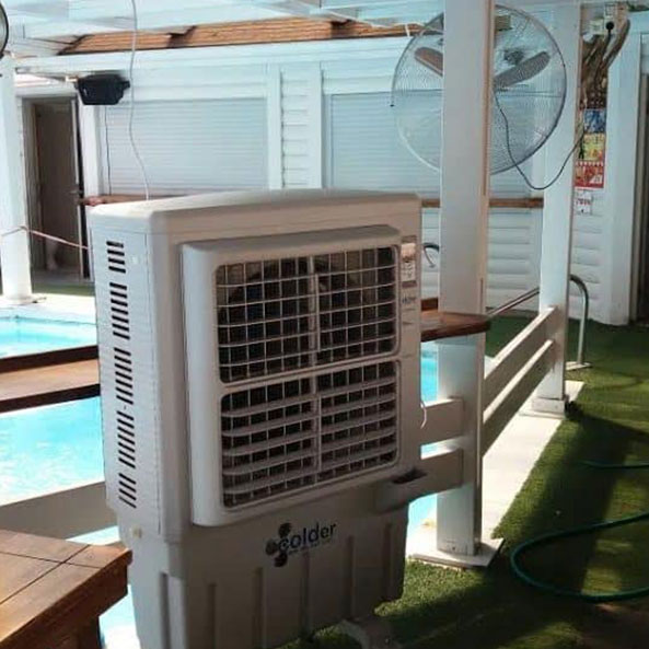 חוף הבורה בורה על שפת הכנרת רכשו 4 מצנני אוויר 7000 בשילוב מערפלי מים S880 לעונת הקיץ לאזור הבר בעזרת המצננים והמערפלים אנשים יכולים לשבת ולהנות גם בחודשי הקיץ החמים.